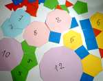 Imprimez ces polygones sur des feuilles de couleurs différentes et découpez-les. Vous réaliserez une grande variété d'activités sur les angles des polygones réguliers, la somme des angles, la recherche de pavages réguliers ou semi-réguliers (de polygones réguliers), la décomposition de 2 en somme de fractions (n-2)/n, la décomposition de fractions en éléments simples comme 10/12=5/6=1/3+1/2 et le théorème de Bézout...