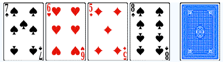Vous faites choisir cinq cartes par un ou plusieurs spectateurs, vous n'en montrez que quatre à votre partenaire qui devra deviner la cinquième carte manquante.
