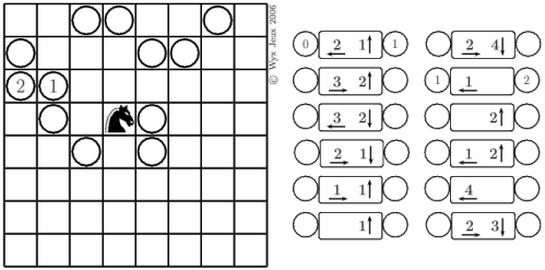 Dans ses déplacements, le cavalier devra effectuer une fois et une seule chacun des 12 déplacements. Les grilles sont construites pour qu'il y ait une solution et une seulement.