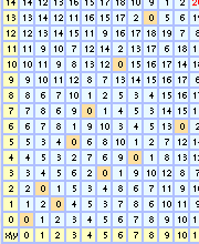 Pour obtenir la table de g(x,y)-s+2*y ou de x+y-g(x,y) au lieu de g(x,y), cocher la case correspondante.