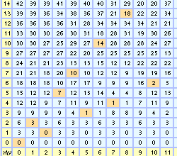 Tant que x et y restent petits, g(x, y) se calcule aisément. Le programme de cette page a pu effectuer les calculs pour x et y inférieurs à N=200, mais évitez de lui en demander trop !